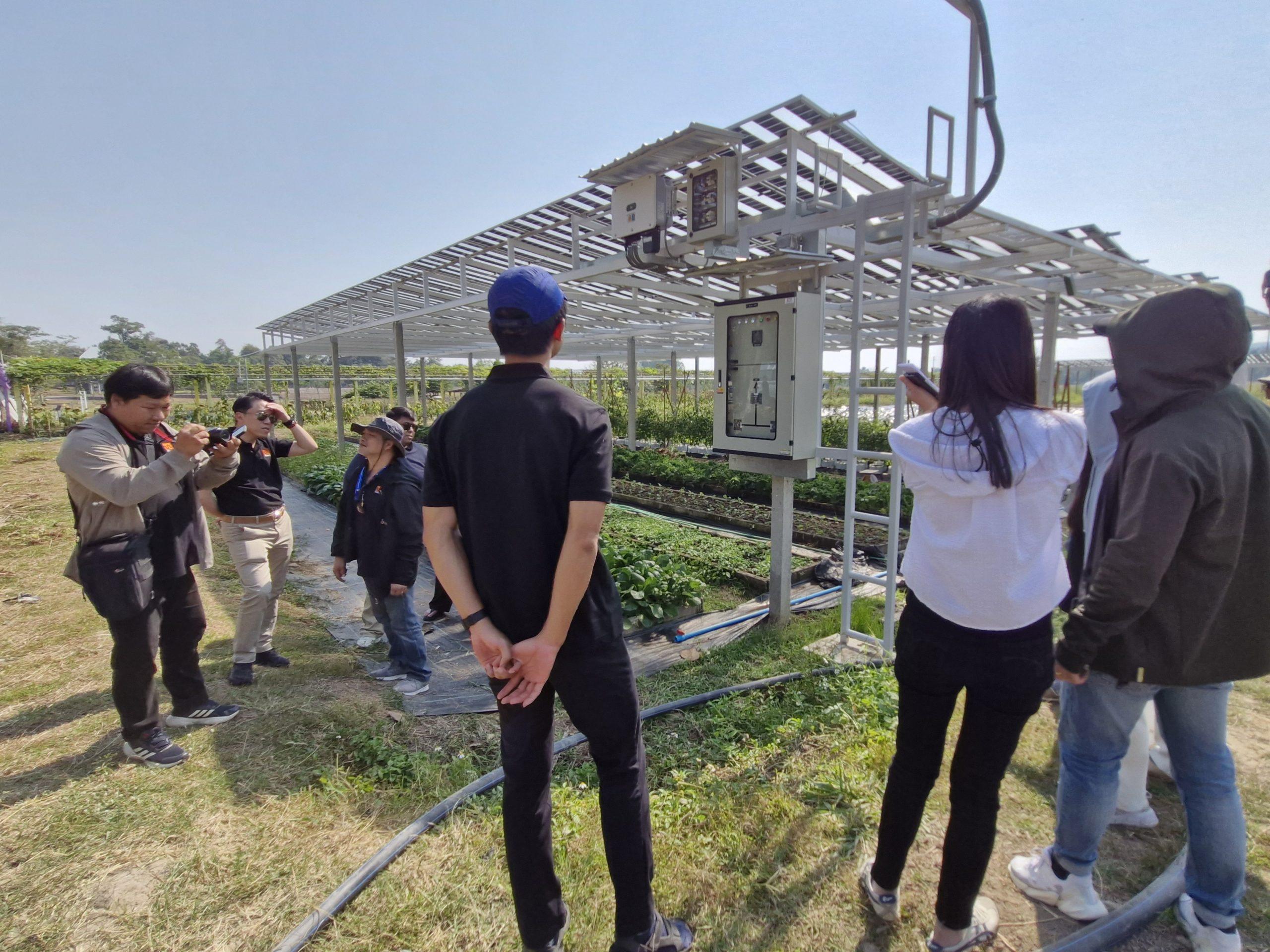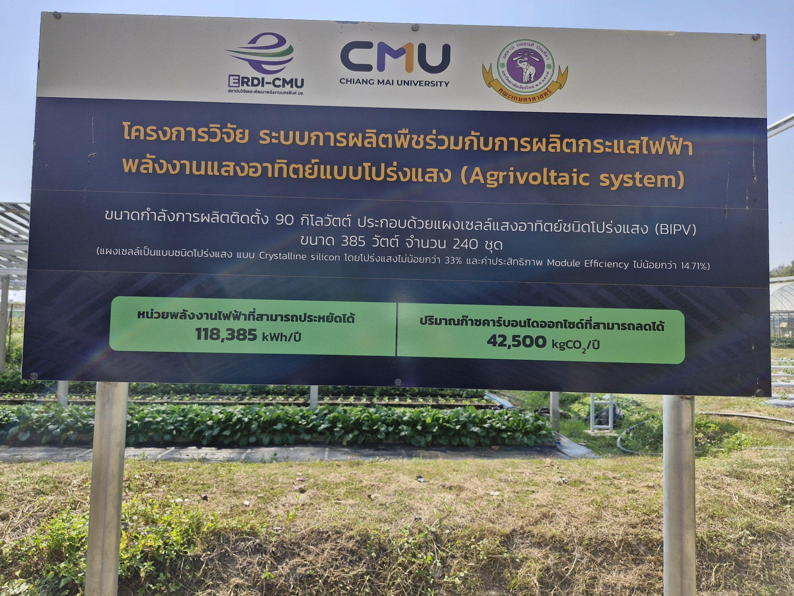สถาบันวิจัยและพัฒนาพลังงานนครพิงค์ มหาวิทยาลัยเชียงใหม่ ให้การต้อนรับคณะอาจารย์และนักศึกษา มหาวิทยาลัยนเรศวร ในโอกาสเดินทางมาศึกษาดูงานเรื่อง โซล่าเซลล์แสงอาทิตย์แบบโปร่งแสง เพื่อเสริมสร้างความรู้ความเข้าใจ การวิจัย พัฒนา และจัดการด้านการอนุรักษ์พลังงาน และใช้ประโยชน์พลังงงานทดแทนให้เกิดประโยชน์สูงสุด และการบริการอย่างปลอดภัยและเป็นมิตรต่อสิ่งแวดล้อม โดยแผงโซล่าร์เซลล์แบบโปร่งใส หรือที่เรียกว่าเซลล์แสงอาทิตย์แบบโปร่งใส (TPV) หรือเซลล์แสงอาทิตย์ชนิดใส ได้รับการออกแบบมาเพื่อให้แสงที่มองเห็นสามารถผ่านได้ในขณะที่จับแสงอาทิตย์เพื่อผลิตกระแสไฟฟ้า เป็นระบบผลิตพืชร่วมกับการผลิตไฟฟ้าขนาดกำลังผลิตติดตั้ง 90 กิโลวัตต์ ประกอบด้วยเซลล์แสงอาทิตย์แบบโปร่งแสง ขนาด 385 วัตต์จำนวน 240 ชุด สามารถประหยัดไฟฟ้าได้ 118,385 kWh/ปี และช่วยลดคาร์บอนไดออกไซด์ได้ 42,500 kgCo2/ปี ส่งเสริมการใช้ไฟฟ้าจากพลังงานทดแทน พลังงานสะอาด โดยการติดตั้งระบบการผลิตไฟฟ้าจากพลังงานแสงอาทิตย์ในสถานศึกษา เพื่อช่วยลดค่าใช้จ่ายด้านพลังงานในสถานศึกษาลงได้อย่างมีประสิทธิภาพและยั่งยืน โดยมีคุณพรทิพย์ กันธิยาถา เป็นวิทยากรให้การบรรยาย ณ แปลงสาธิต ในไร่แม่เหียะ ในวันพฤหัสบดี ที่ 30 มกราคม 2568