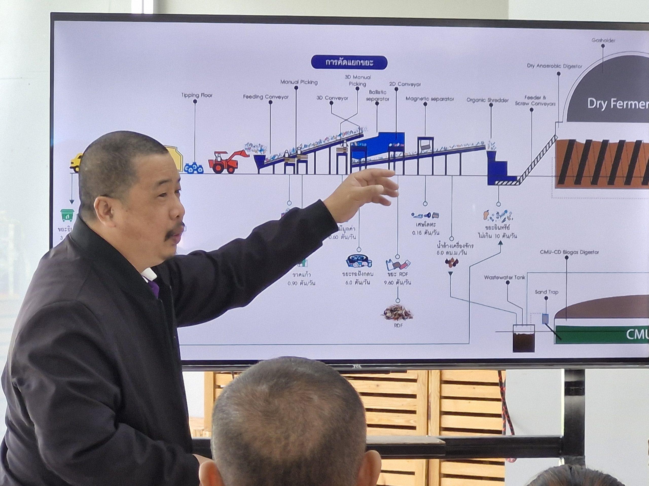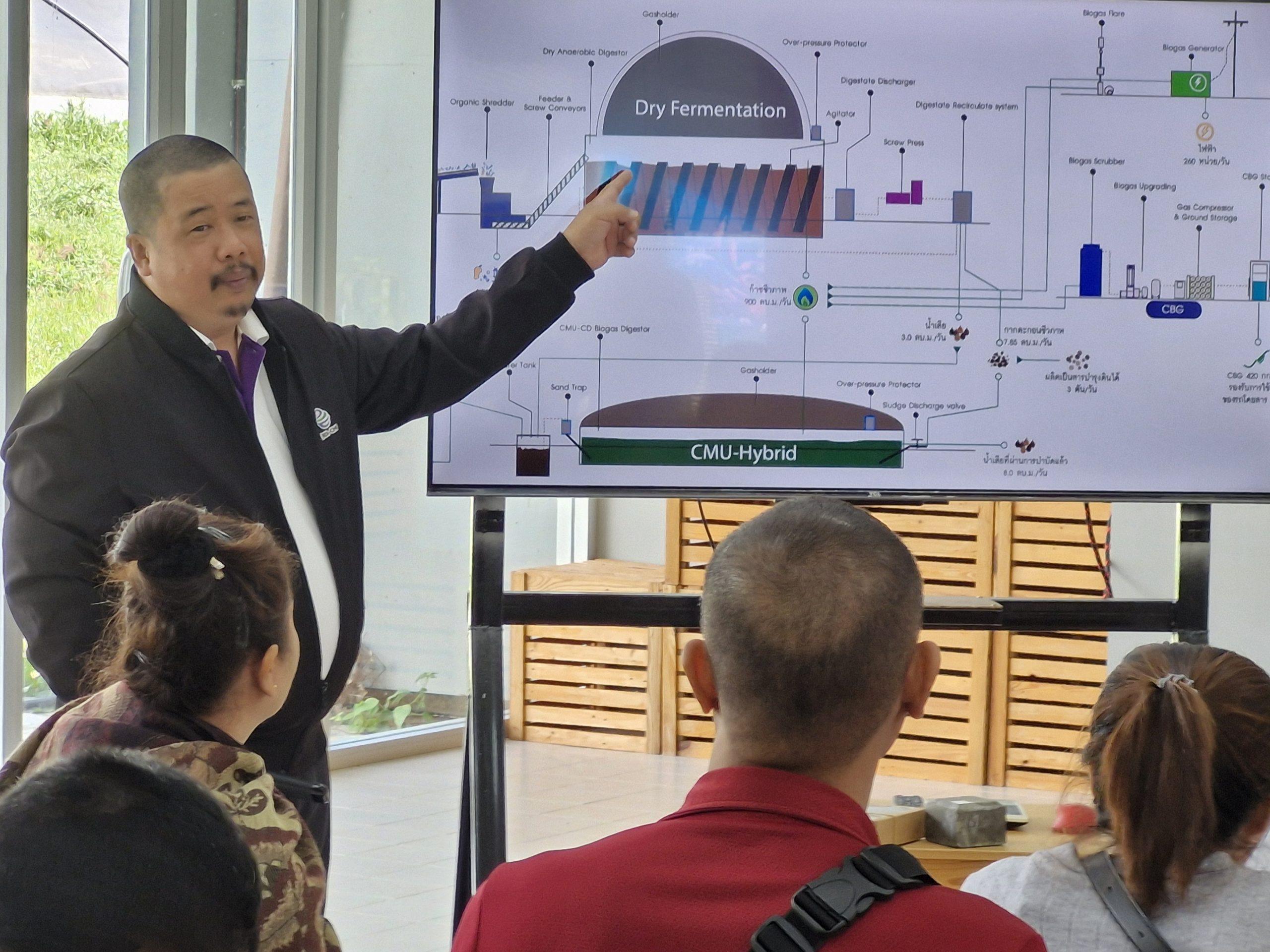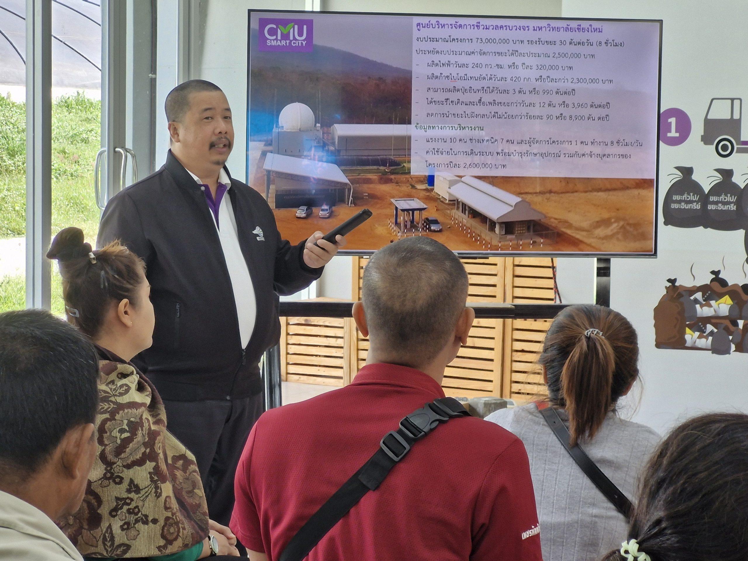 สถาบันวิจัยและพัฒนาพลังงานนครพิงค์ มหาวิทยาลัยเชียงใหม่ ให้การต้อนรับคณะองค์การบริหารส่วนตำบล บางชนะ จ.สุราษฎร์ธานี ในโอกาสเดินทางมาศึกษาดูงานศูนย์บริหารจัดการชีวมวลแบบครบวงจรอย่างยั่งยืน ด้วยการนำขยะไปกำจัด จนสามารถเปลี่ยนขยะให้เป็นพลังงานที่นำกลับมาหมุนเวียนนำมาใช้ต่อ ช่วยส่งเสริมกระบวนการผลิตและการใช้เทคโนโลยีและนวัตกรรมพลังงานที่สะอาด ทำให้สามารถลดปริมาณขยะได้อย่างมีประสิทธิภาพ ส่งเสริมการรักษาสิ่งแวดล้อมและการใช้พลังงานที่สะอาด สามารถลดโลกร้อนได้อย่างยั่งยืน โดยจะนำแนวคิดนี้ไปเป็นต้นแบบในการส่งเสริมบริหารจัดการขยะของชุมชนด้วย โดยมีคุณสุพจน์ จินดาหลวง เจ้าหน้าที่สถาบันฯ เป็นวิทยากรให้การบรรยาย ณ ศูนย์บริหารจัดการชีวมวลครบวงจร มหาวิทยาลัยเชียงใหม่ ในวันศุกร์ ที่ 17 ตุลาคม 2568