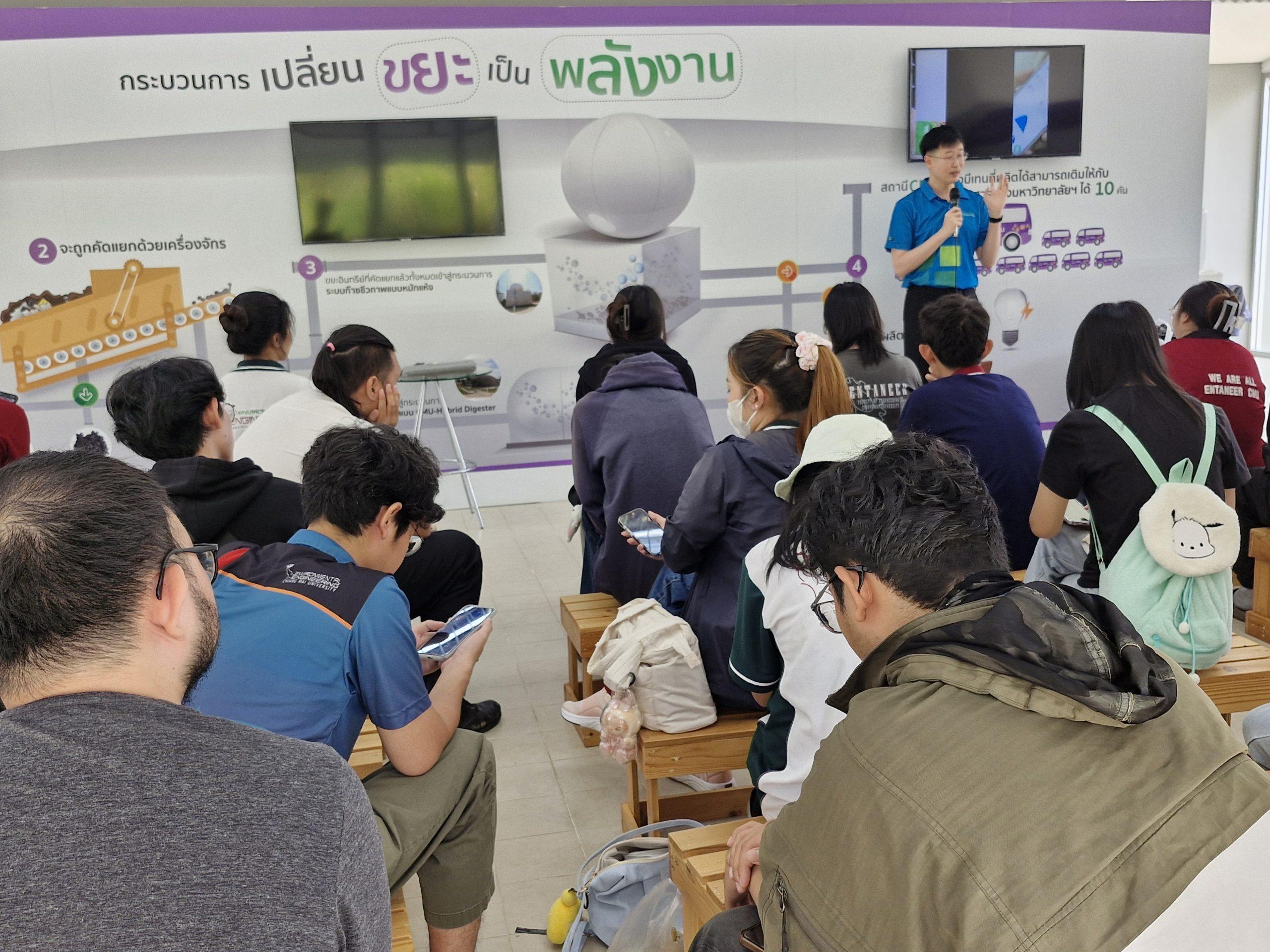สถาบันวิจัยและพัฒนาพลังงานนครพิงค์ มหาวิทยาลัยเชียงใหม่ ให้การต้อนรับนักศึกษาภาควิชาวิศวกรรมสิ่งแวดล้อม มหาวิทยาลัยเชียงใหม่ ในโอกาสเดินทางมาศึกษาดูงานเกี่ยวกับการผลิตพลังงานก๊าซชีวภาพจากขยะและการบริหารจัดการของเสียและการบริการภาคอุตสาหกรรมอย่างยั่งยืน ปลอดภัยและเป็นมิตรต่อสิ่งแวดล้อม เพื่อให้นักศึกษามีความรู้ความเข้าใจและเกิดความตระหนักในสิ่งแวดล้อม การบำบัดและการใช้ประโยชน์จากของเสียที่เป็นขยะ และกระบวนการผลิตพลังงานทดแทนที่สะอาด ช่วยลดการปล่อยก๊าซเรือนกระจก ทำให้นักศึกษาได้มีโอกาสในการเรียนรู้การจัดการสิ่งแวดล้อมอย่างยั่งยืน โดยมี ผศ.ดร.ปรัตถกร สิทธิสม อาจารย์ภาควิชาวิศวกรรมสิ่งแวดล้อม มหาวิทยาลัยเชียงใหม่ เป็นวิทยากรให้การบรรยาย ณ ศูนย์บริหารจัดการชีวมวลครบวงจร มหาวิทยาลัยเชียงใหม่ ในวันพุธ ที่ 11 มีนาคม 2569