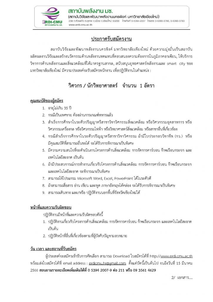 ประกาศรับสมัคร วิศวกร (คาร์บอน)